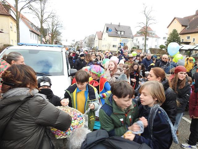 Stuttgart-Sillenbuch ... Der Schnee vom Vorabend war pünktlich verschwunden, es war zwar windig, aber trocken – entsprechend gut war die Stimmung beim Rosenmontag für Kinder in Sillenbuch. Gestartet wurde mit Guggenmusik vor dem Bezirksrathaus, aus dem erste Bonbons geworfen wurden. Danach ging es mit Polizeieskorte über die Spaichinger und Kirchheimer Straße – wo weitere Bonbons gesammelt werden durften – zum Waldheim. Hier einige Impressionen.